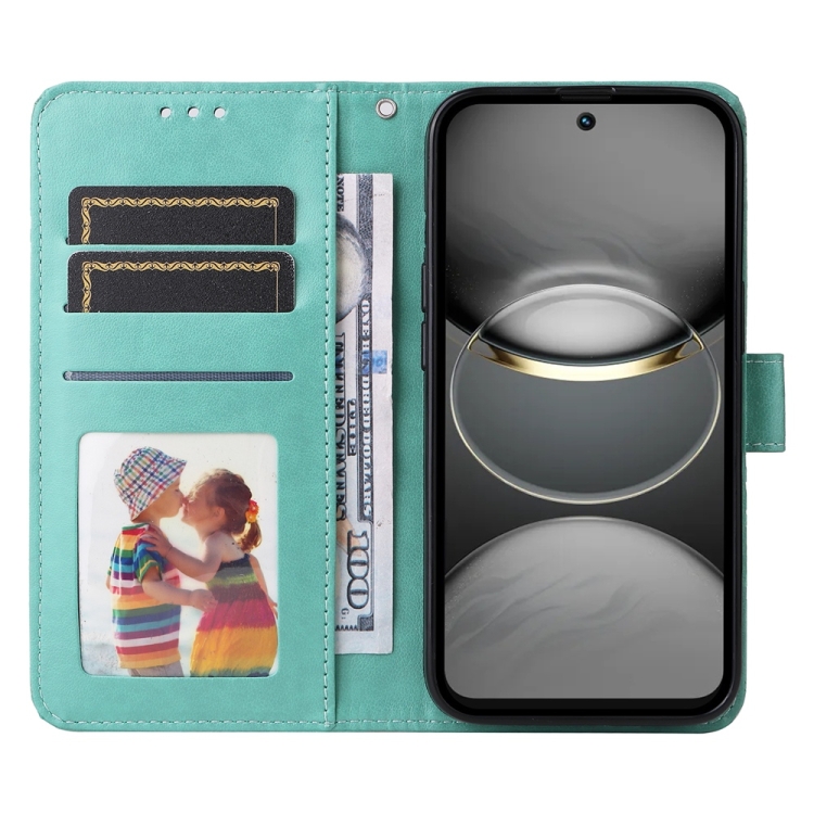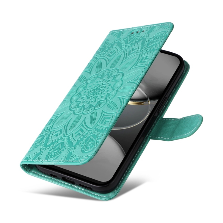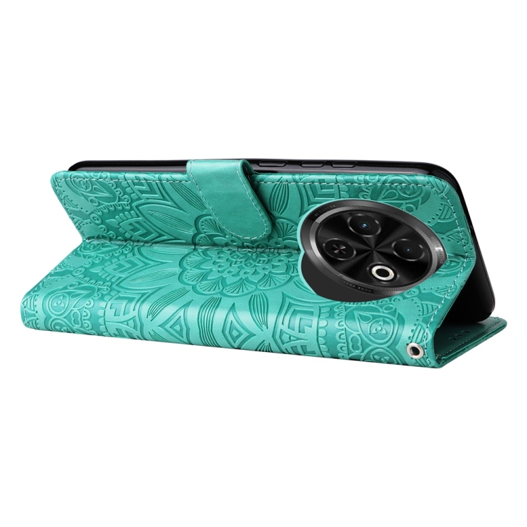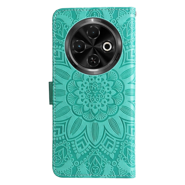 Funda de Piel para Tecno Spark 30C con Diseño de Girasol en Relieve (Verde)