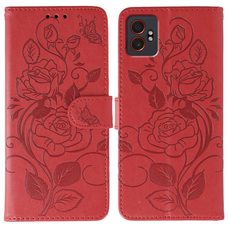 Funda de piel con estampado de mariposas rosas para Samsung Galaxy XCover7 Pro (roja)