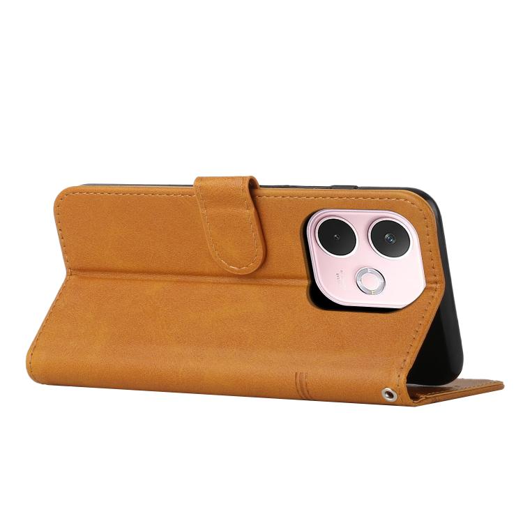 Funda de Piel con Hebilla y Textura de Becerro con Costuras Globales para Oppo A5 Pro 5G (Amarilla)