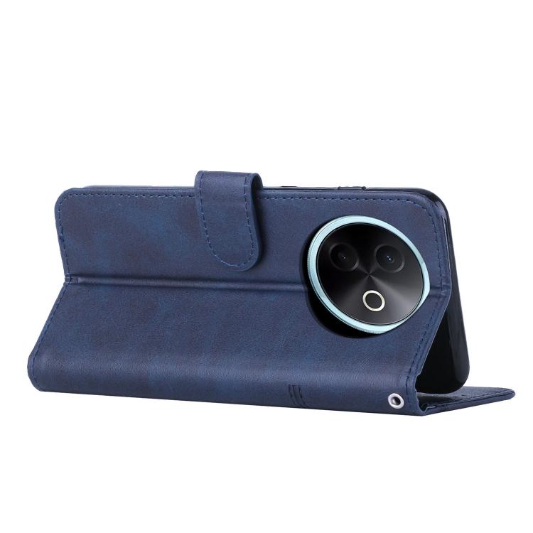 Funda de Piel con Hebilla y Textura de Becerro con Costuras Globales para Vivo Y39 5G (Azul)