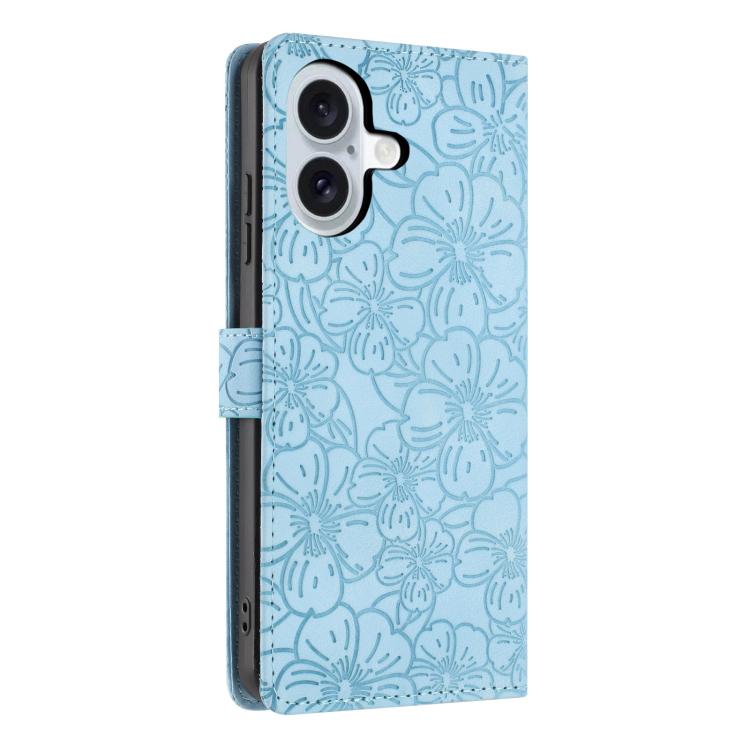Funda de piel con relieve de cerezo para iPhone 17 (azul claro)