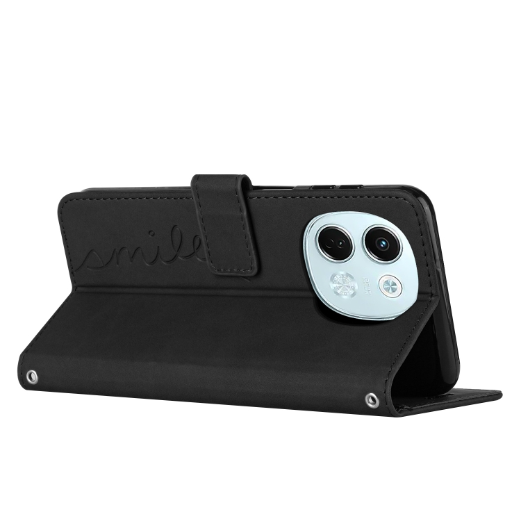 Funda de Piel con Relieve de Corazón para Tecno Spark 30 5G con Cordón Largo (Negro)