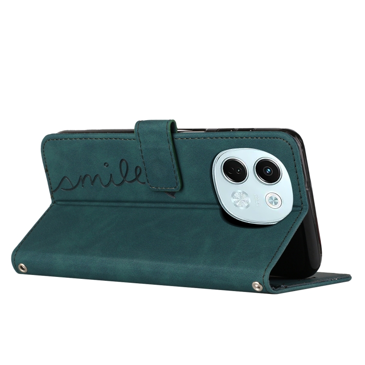 Funda de Piel con Relieve de Corazón para Tecno Spark 30 5G con Cordón Largo (Verde)