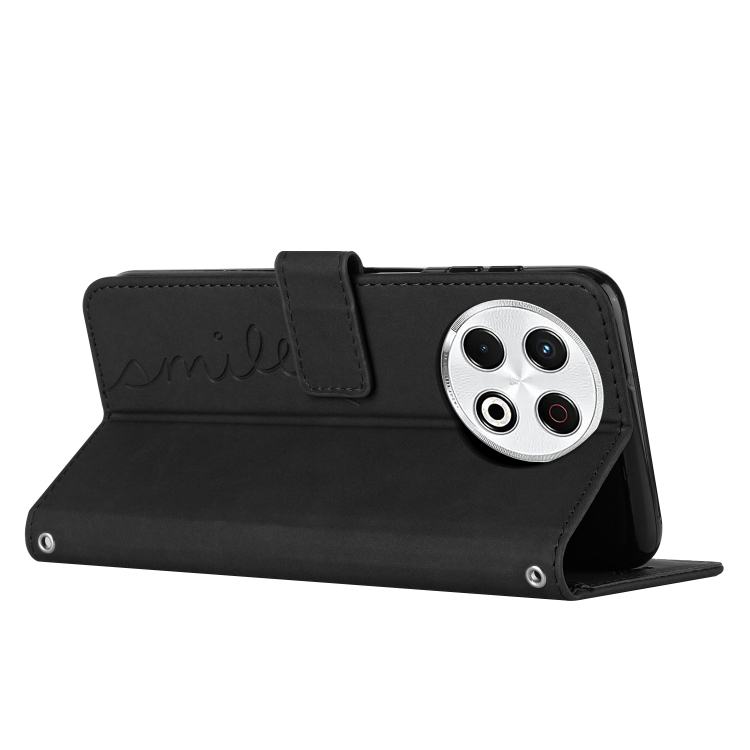 Funda de Piel con Relieve de Corazón para Tecno Spark 30 Pro con Cordón Largo (Negro)