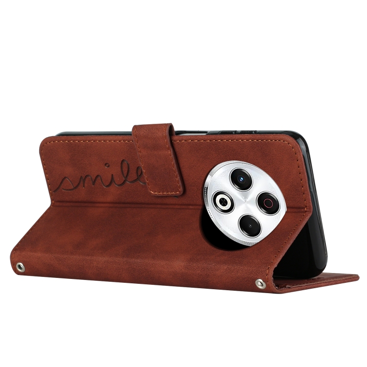 Funda de Piel con Relieve de Corazón y Cordón Largo para Tecno Spark 30 4G (Marrón)