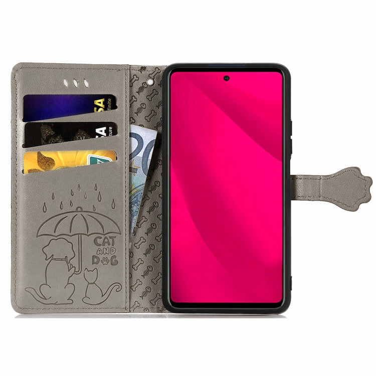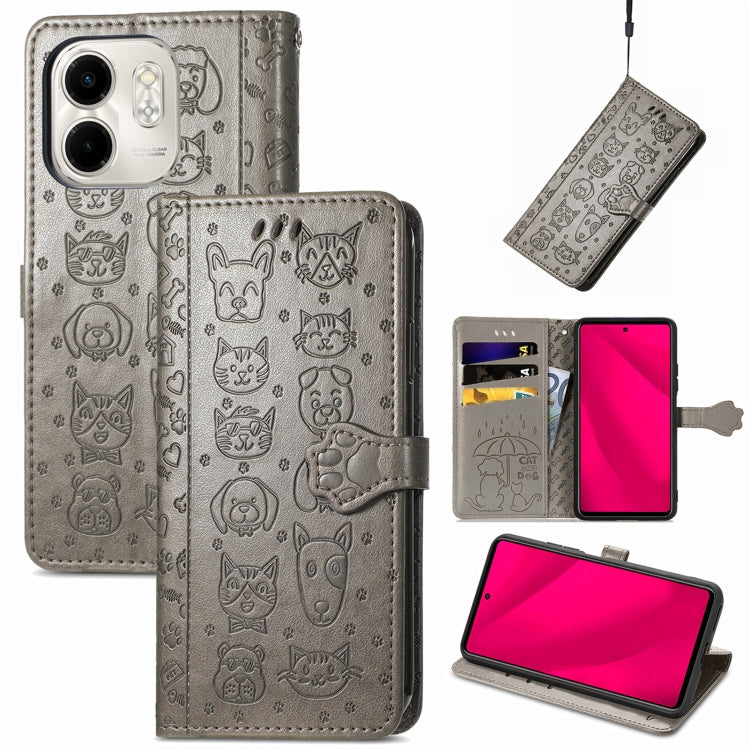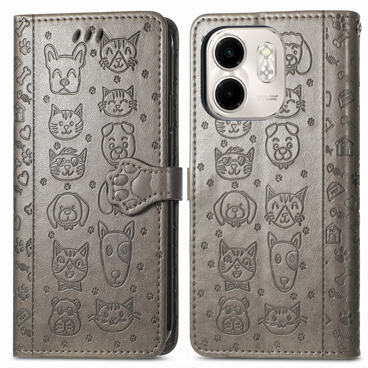 Funda de Piel con Relieve de Gato y Perro para Infinix Smart 9 (Gris)