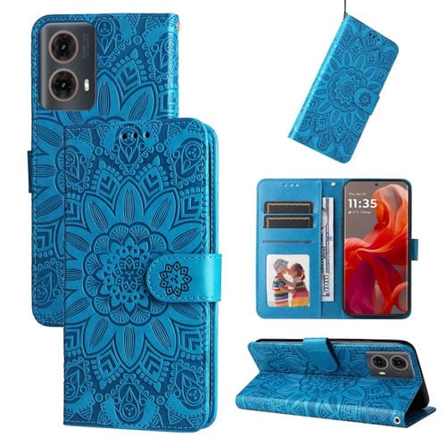 Funda de Piel con Relieve de Girasol para Motorola Moto G85 y S50 Neo (Azul)