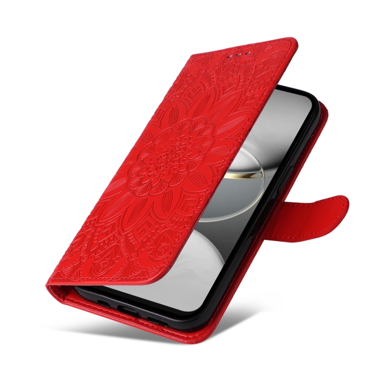 Funda de Piel con Relieve Girasol para Tecno Spark 30 4G (Roja)