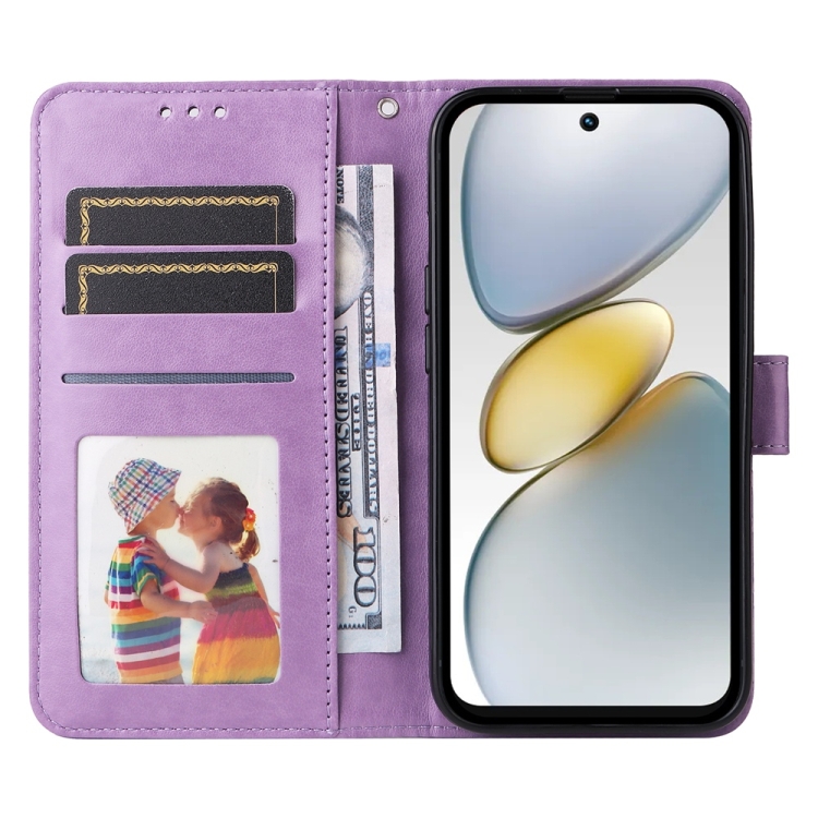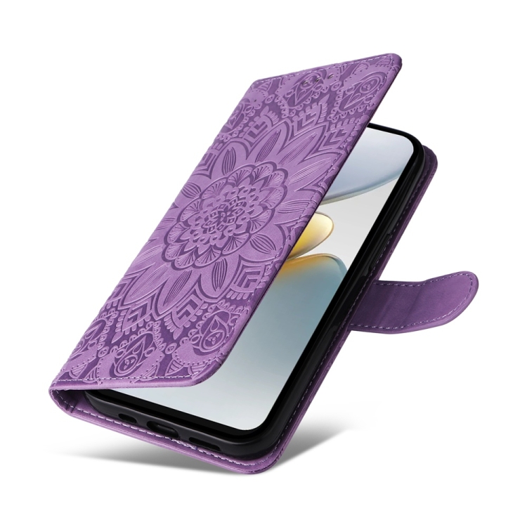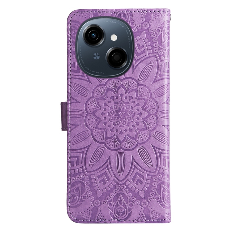 Funda de Piel con Relieve de Girasol para Tecno Spark Go 1 / Pop 9 / Spark Go 2025 (Morado)