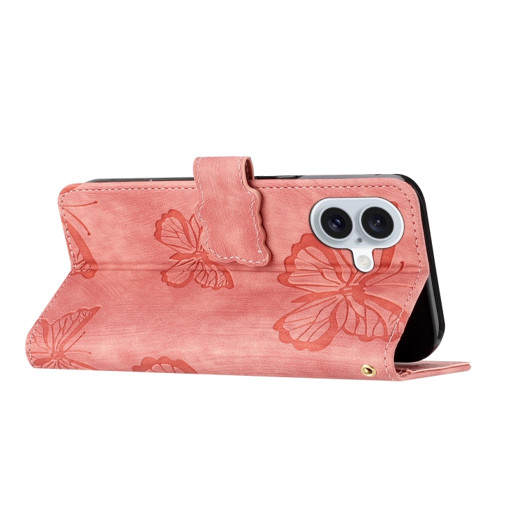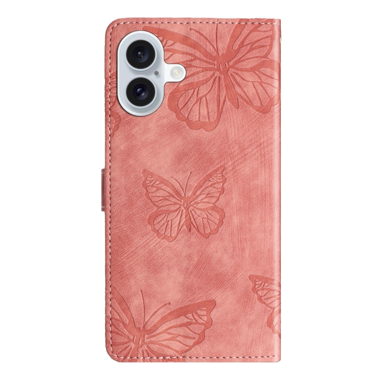 Funda de Piel con Relieve de Mariposa para iPhone 16 (Rosa)