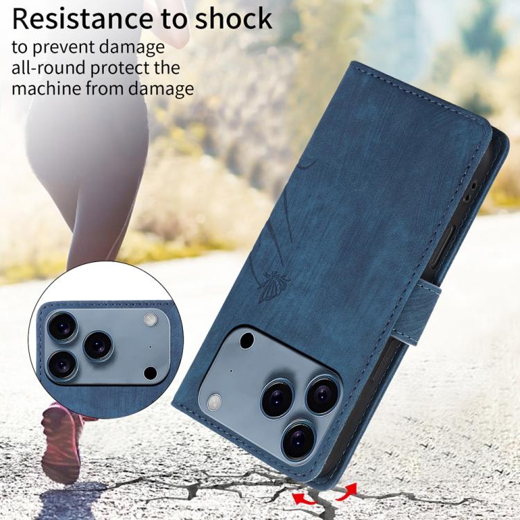Funda de piel con relieve de mariposa y orquídea para iPhone 17 Pro (azul)