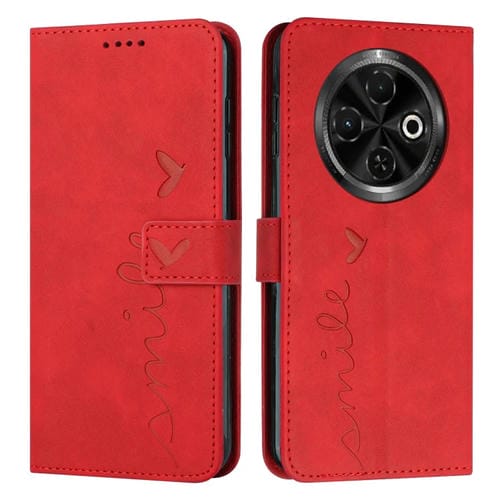 Funda de Piel con Relieve en Forma de Corazón para Tecno Spark 30C (Rojo)