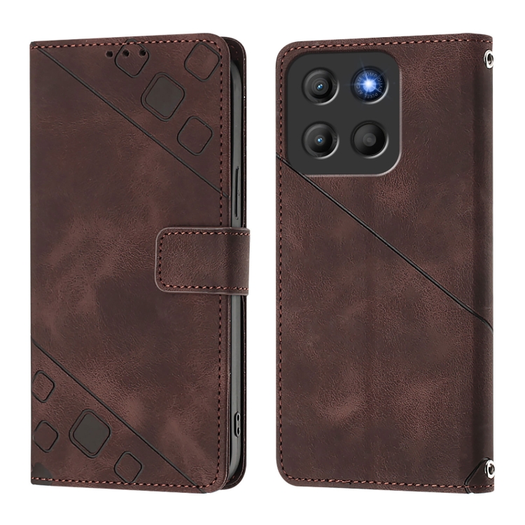 Funda de Piel con Relieve para Motorola Moto G15 (Marrón)
