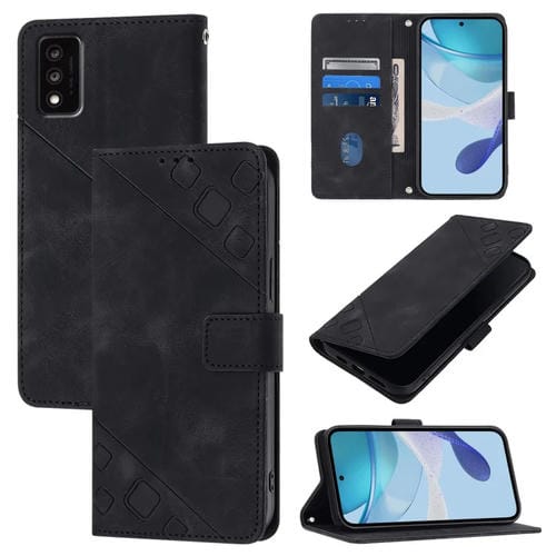 Funda de Piel con Relieve para Teléfono TCL 30T T603Dl (Negra)