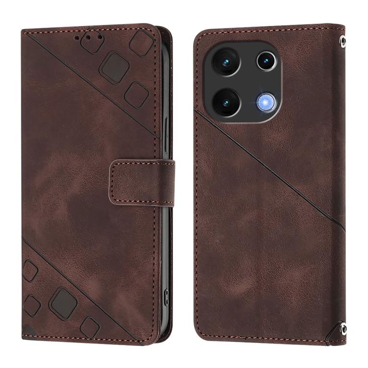 Funda de Piel con Relieve para Teléfono Umidigi Note 100 (Marrón)