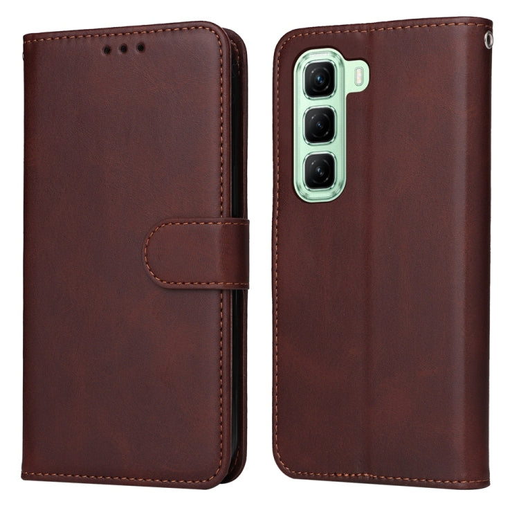 Funda de Piel con Tapa Textura Clásica de Becerro para Infinix Hot 50 5G (Marrón)