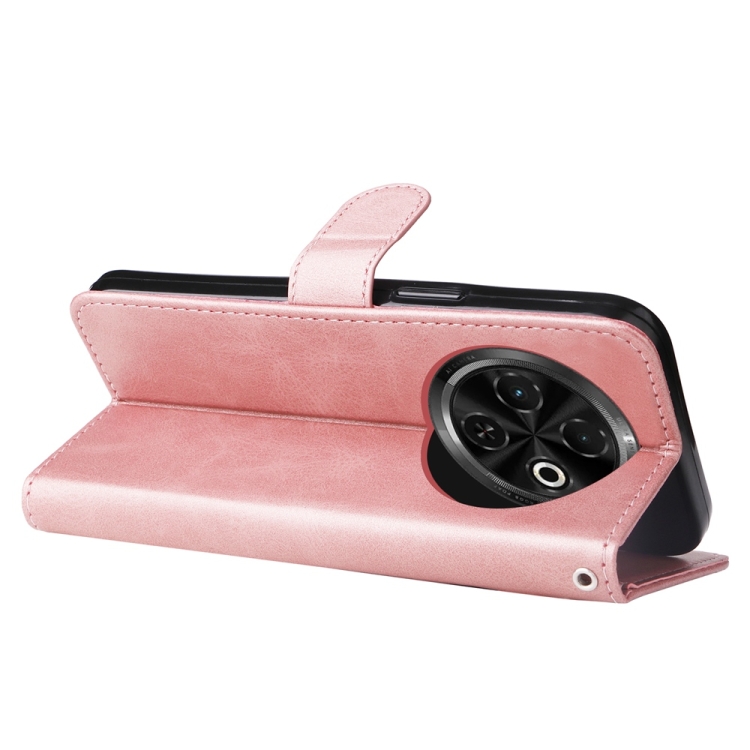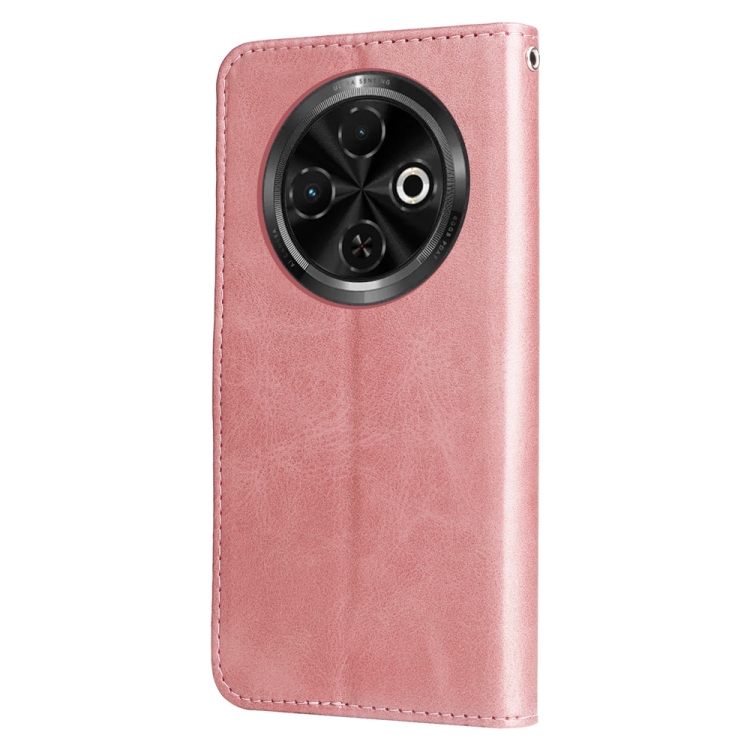 Funda de Piel Textura Becerro con Cremallera para Tecno Spark 30C (Oro Rosa)