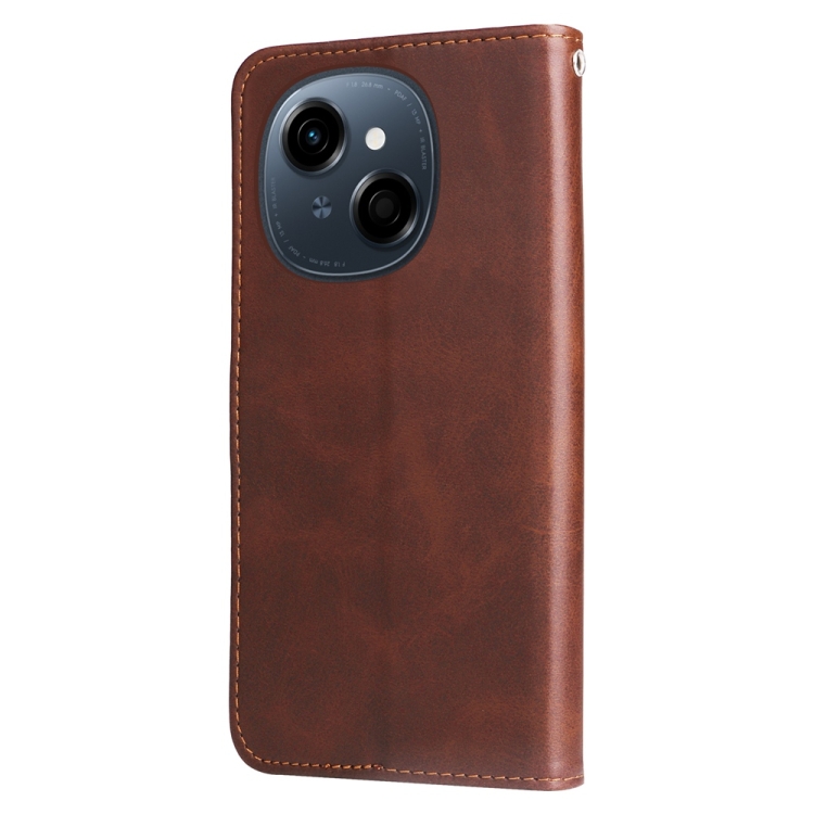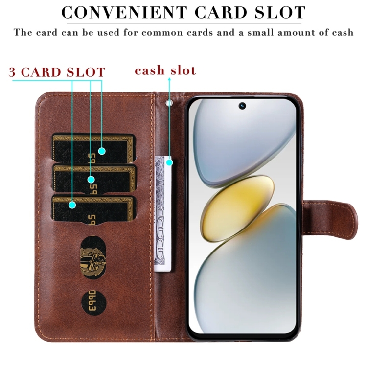 Funda de Piel con Textura de Becerro y Cremallera para Tecno Spark Go 1 / Pop 9 / Spark Go 2025 (Marrón)