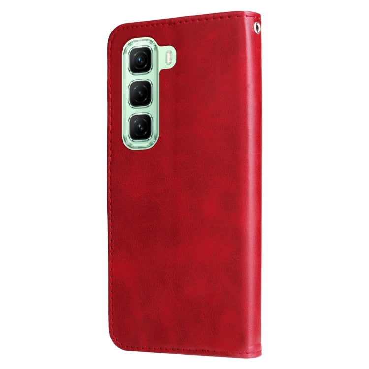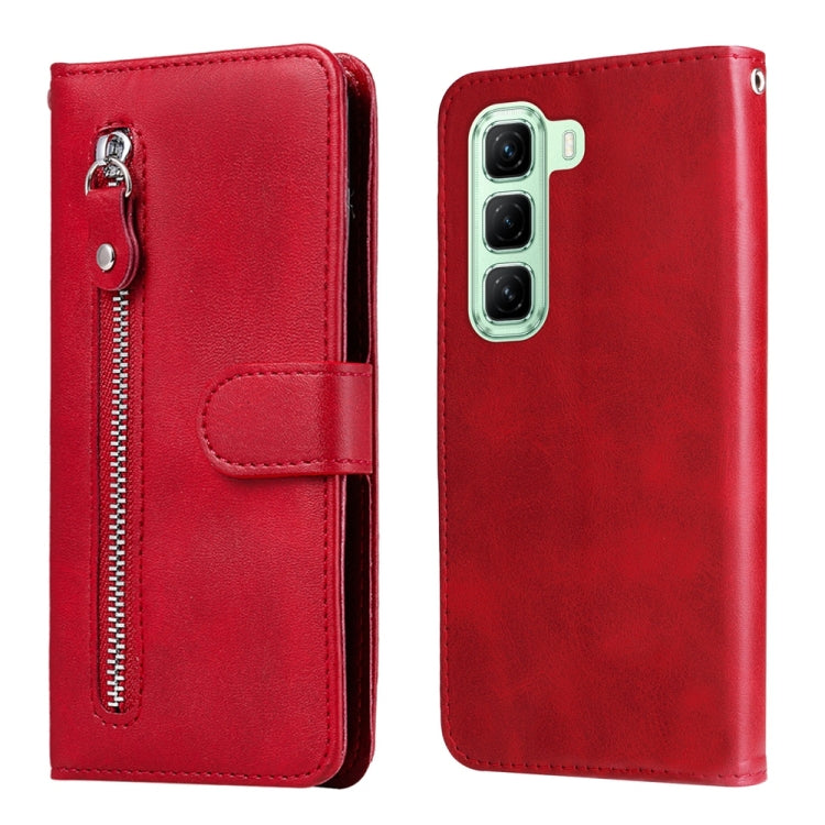Funda de Piel con Textura de Becerro y Cremallera para Infinix Hot 50 5G (Rojo)