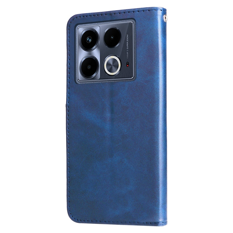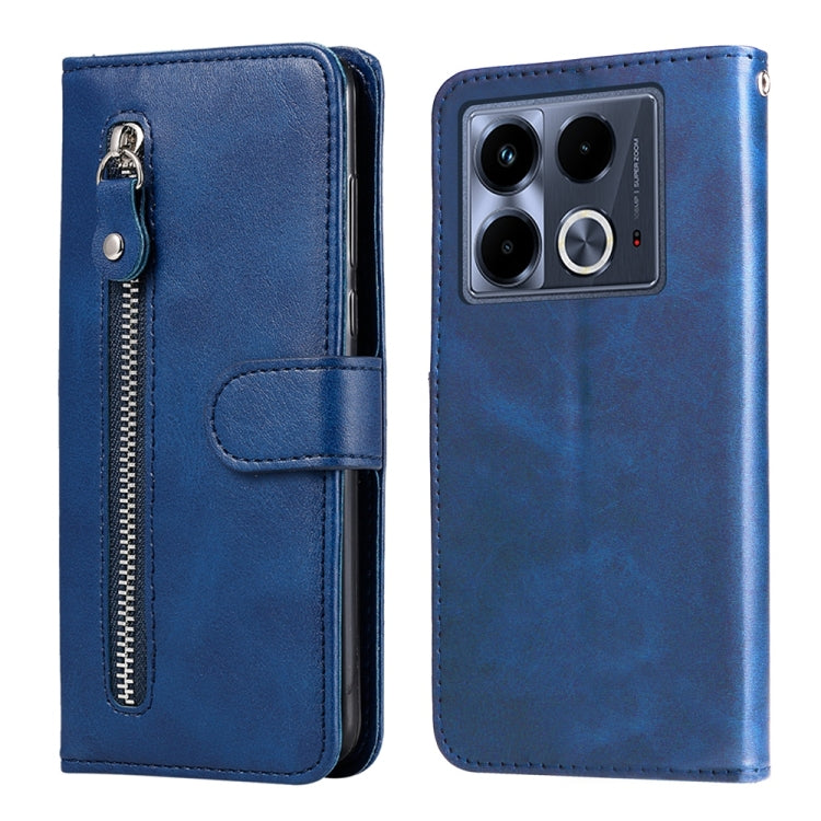 Funda de Piel con Textura de Becerro y Cremallera para Infinix Note 40 4G (Azul)