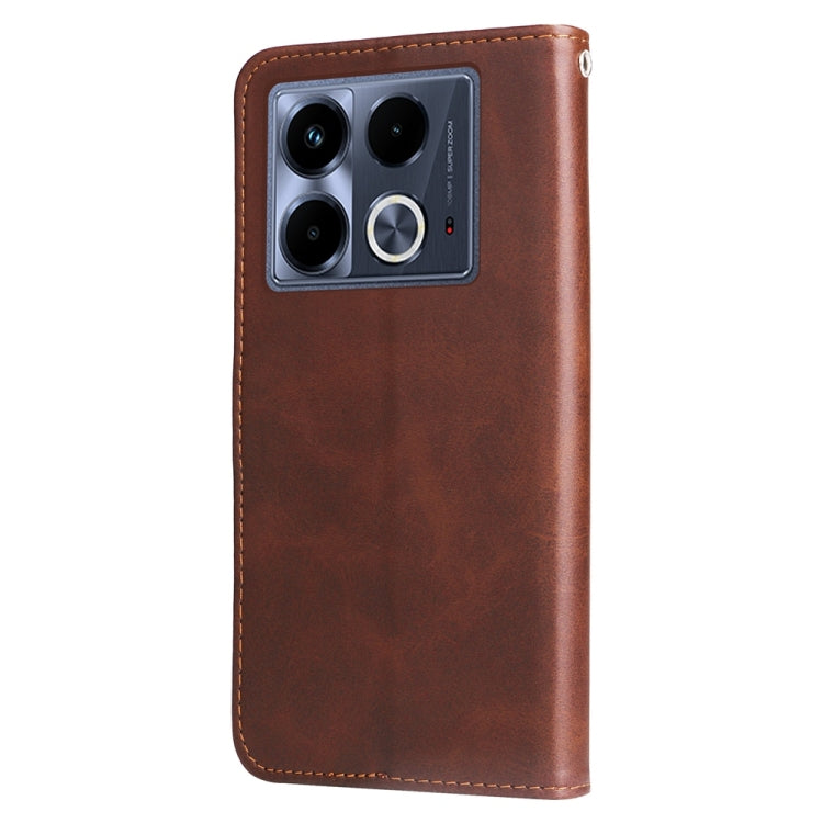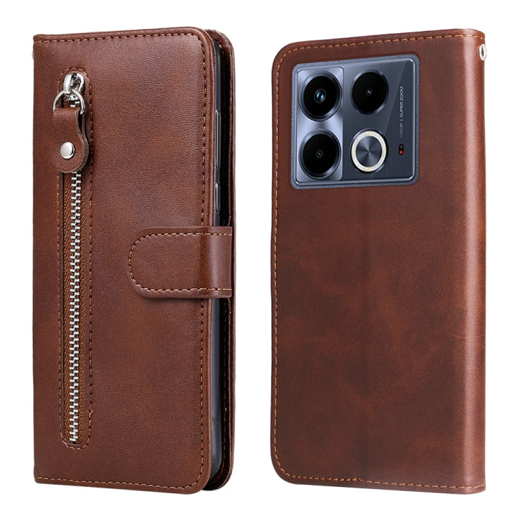 Funda de Piel Textura Becerro con Cremallera para Infinix Note 40 4G (Marrón)