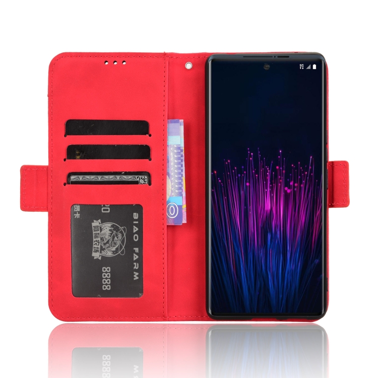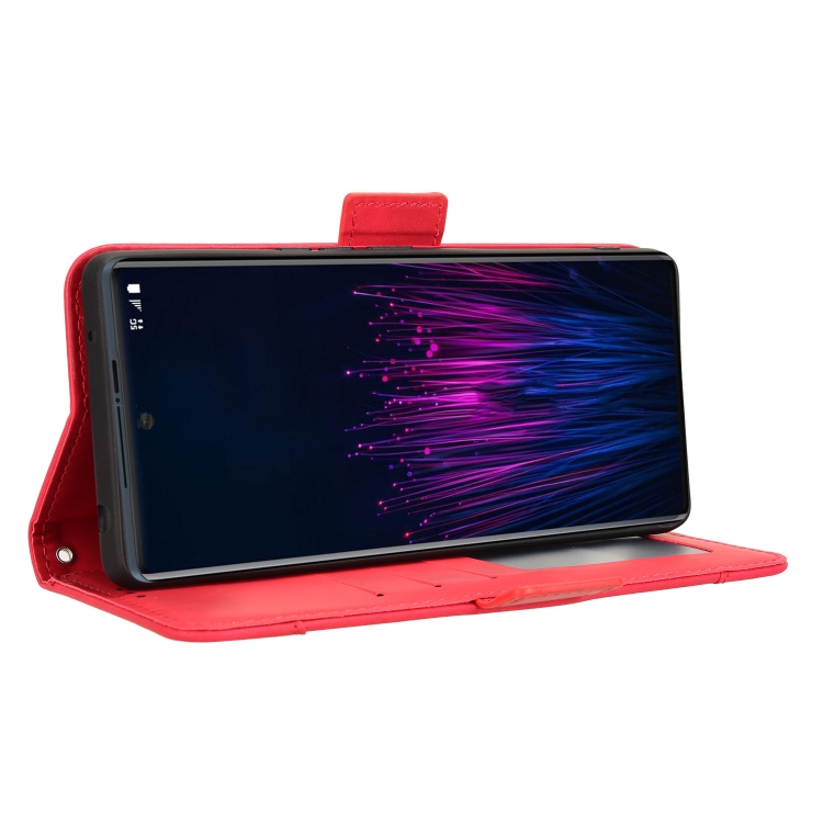 Funda de Piel Becerro con Ranuras para Tarjetas para HTC U24 Pro (Rojo)