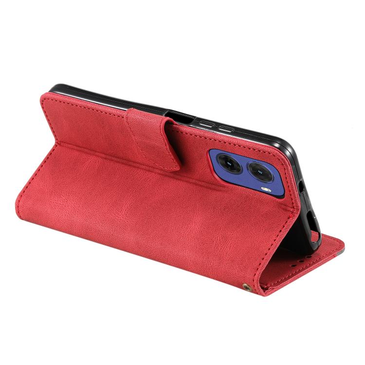 Funda de Piel de Becerro con Costuras para Motorola Moto G05 (Rojo)
