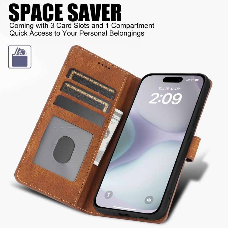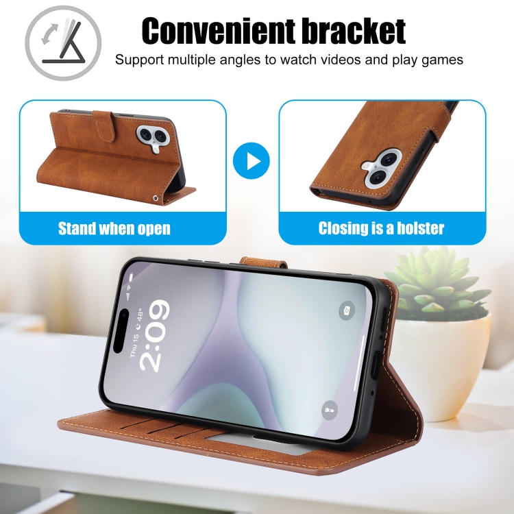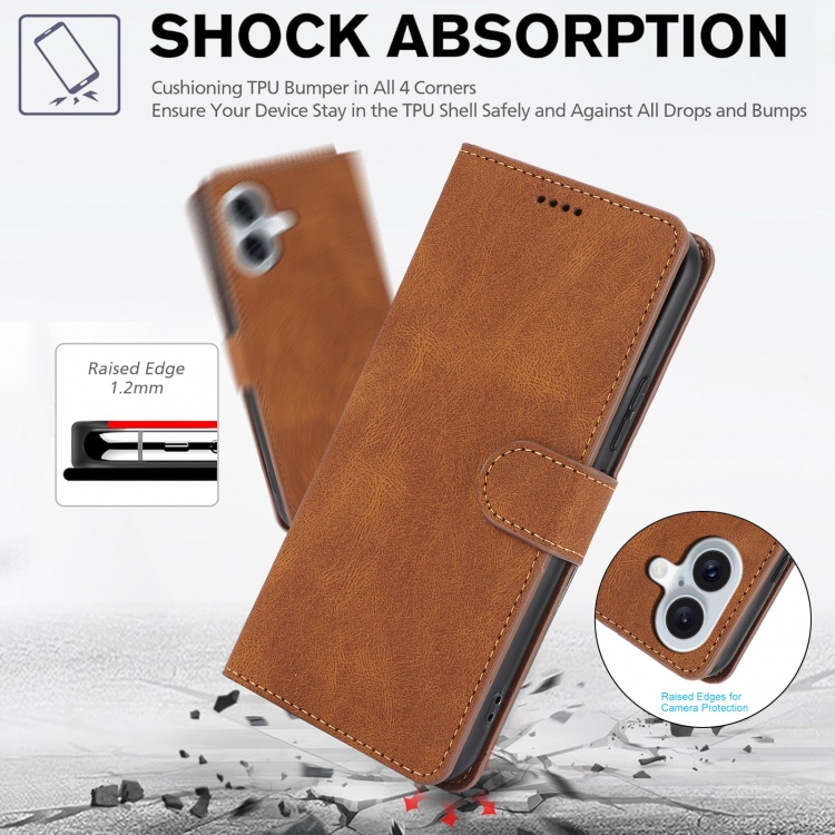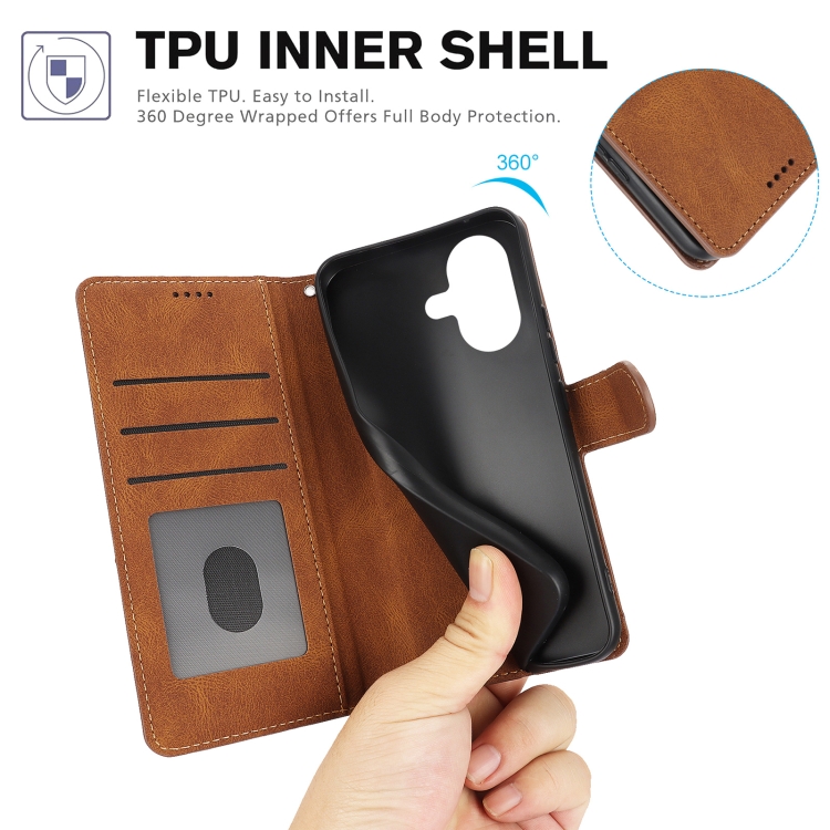 Funda de Piel de Becerro para iPhone 16 con Textura de Piel de Fantasía (Marrón)