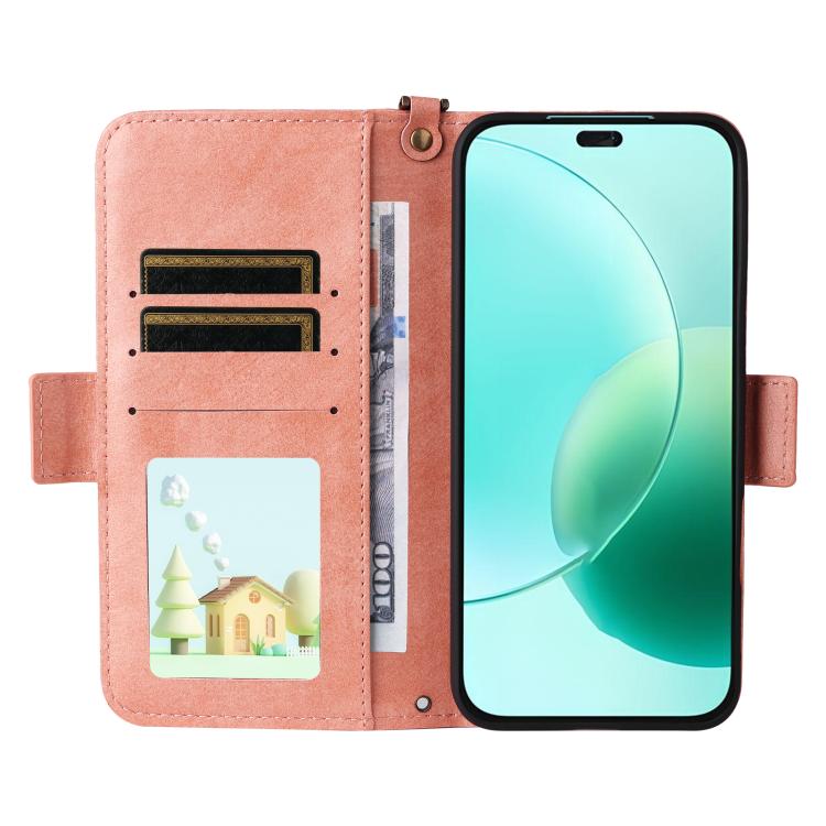 Funda de piel de vacuno cruzada con ranuras para múltiples tarjetas para Honor 400 Lite (rosa)