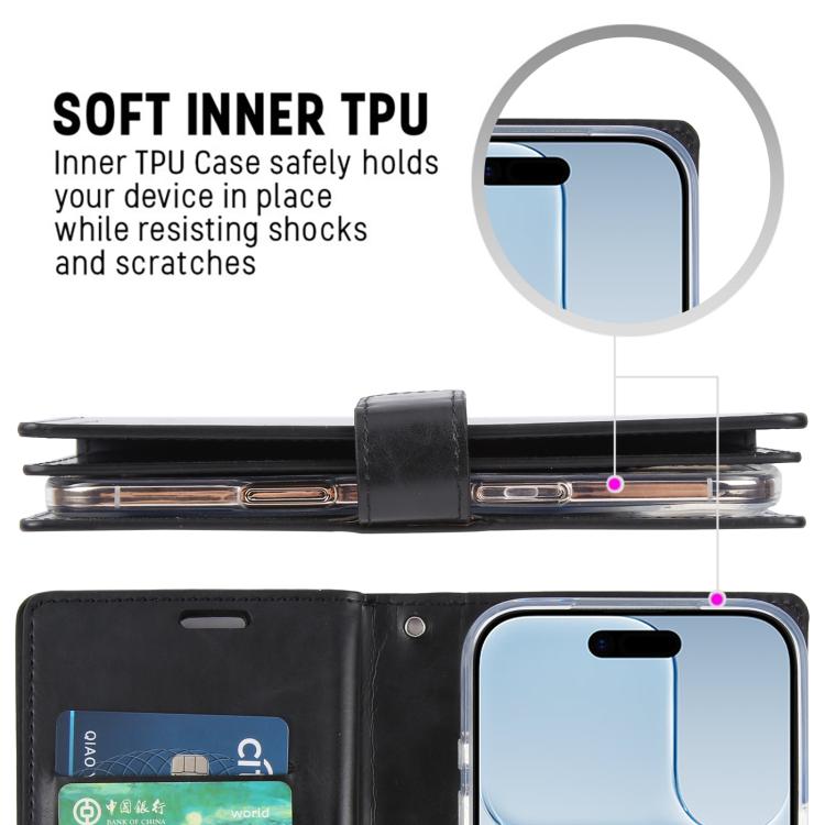 Funda de piel para iPhone Air GOOSPERY MANSOOR DIARY con 9 ranuras para tarjetas (negra)