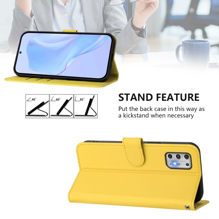 Funda de Piel Sintética con Cordón para Motorola Moto G Stylus 2021 4G (Amarillo Limón)