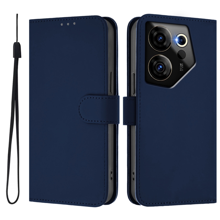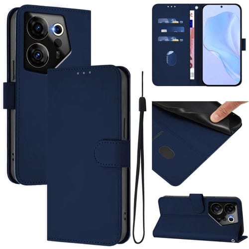 Funda de Piel para Tecno Camon 20 Premier 5G con Textura Liso y Cordón (Azul Marino)
