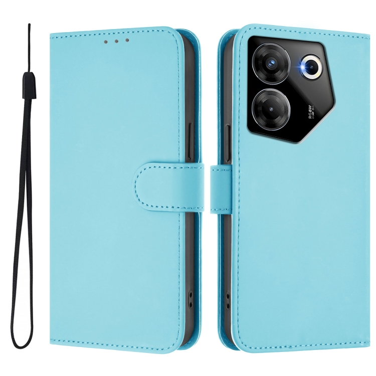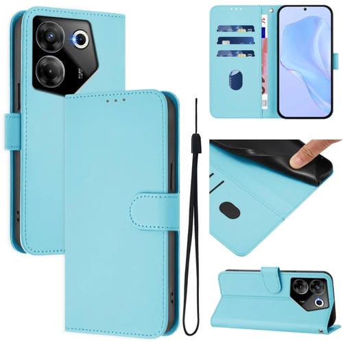 Funda de Piel para Tecno Camon 20 Pro 5G con Textura y Cordón (Azul Cielo)