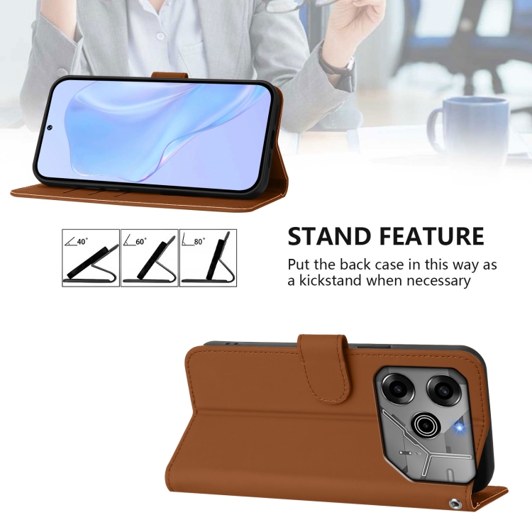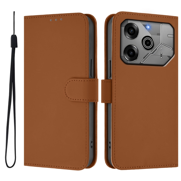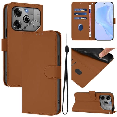 Funda de Piel con Cordón para Tecno Spark 6 Go/Go 2021 (Marrón)
