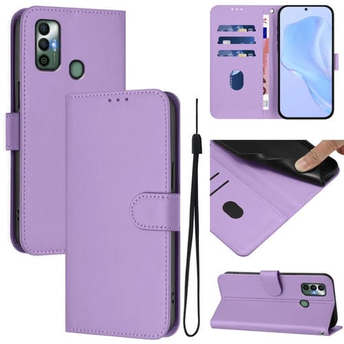 Funda de Piel para Tecno Spark 7/7T con Textura Lisa y Cordón (Morado Lavanda)
