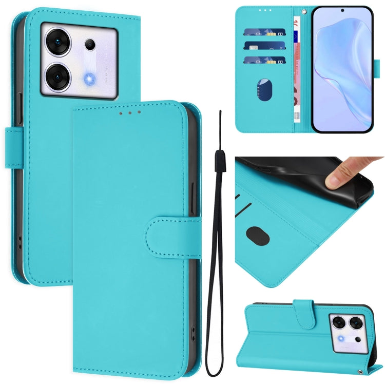 Funda de Piel Sintética con Cordón para Teléfono Infinix Zero 30 5G (Azul Lago)