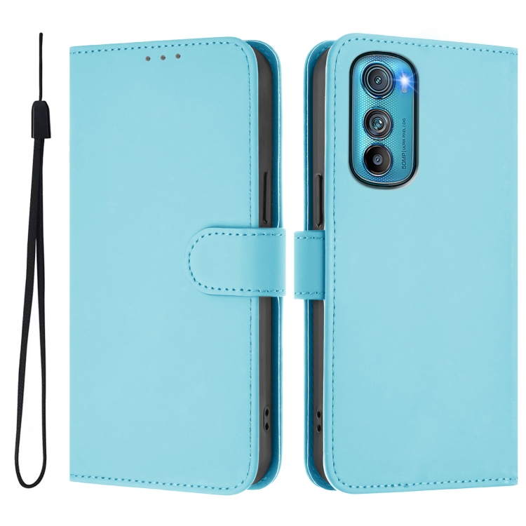 Funda de Piel Sintética con Cordón para Motorola Edge 30 (Azul Cielo)