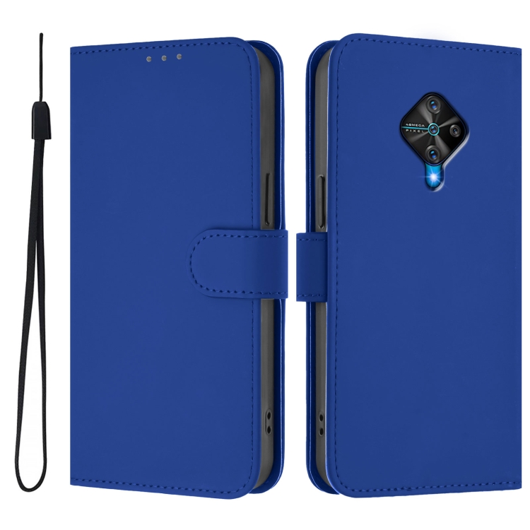 Funda de Piel Sintética con Cordón para Teléfono Vivo Y53S 4G/Y51A 2021 (Azul Oscuro)