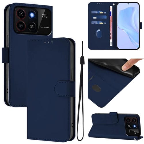 Funda de Piel Sintética con Cordón para ZTE Blade A35/A55 (Azul Marino)