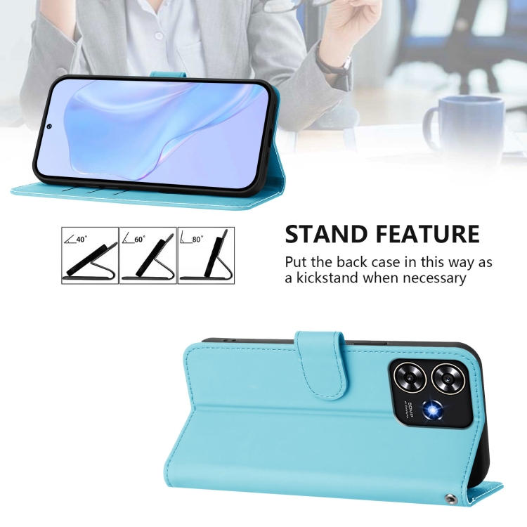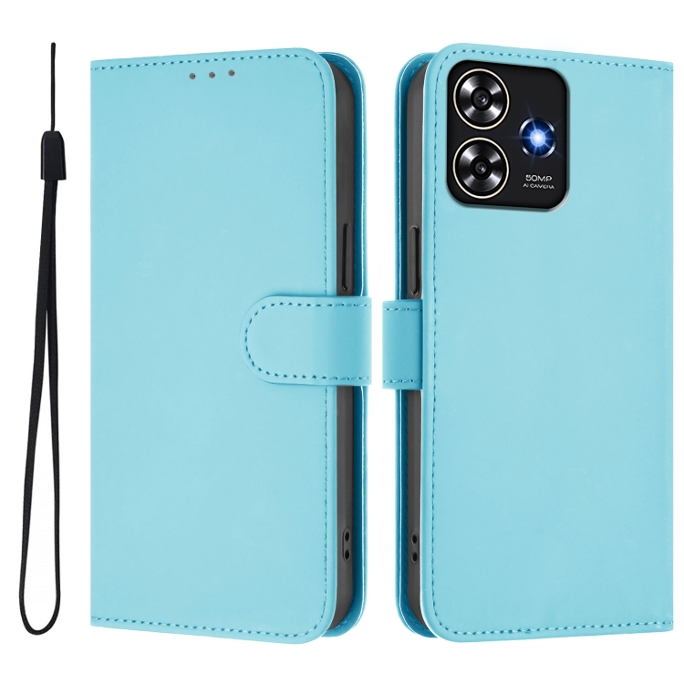Funda de Piel Sintética con Cordón para ZTE Blade A73 4G (Azul Cielo)