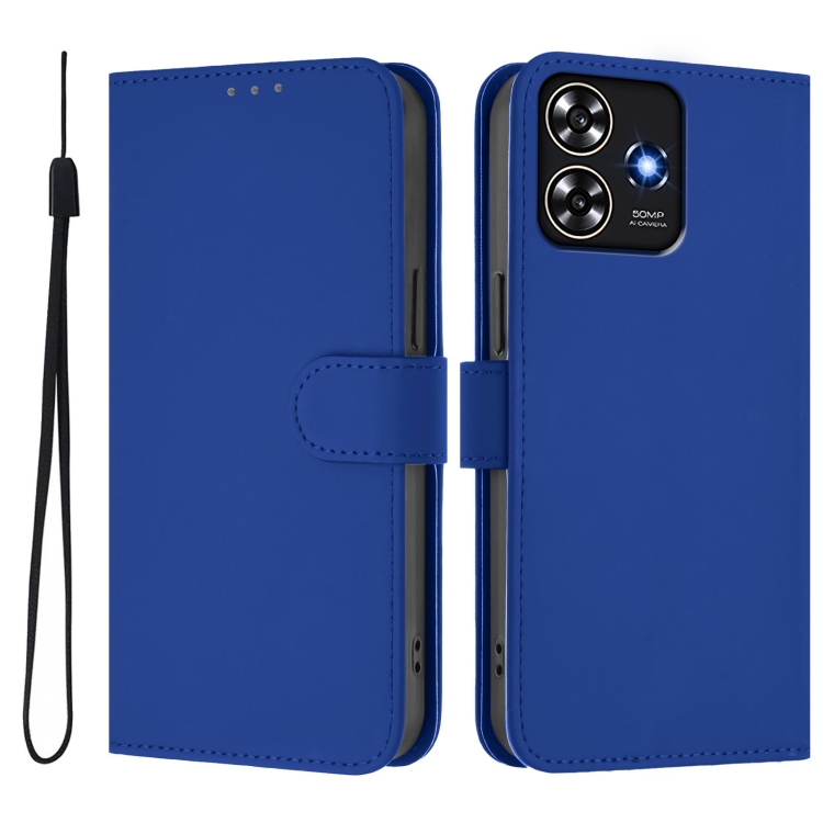 Funda de Piel Sintética con Cordón para ZTE Blade A73 4G (Azul Oscuro)