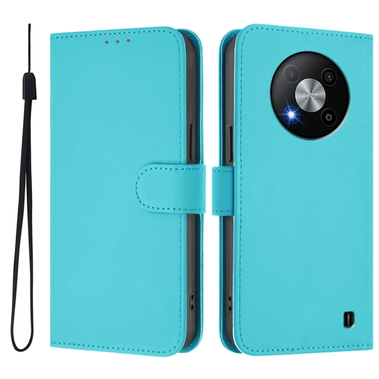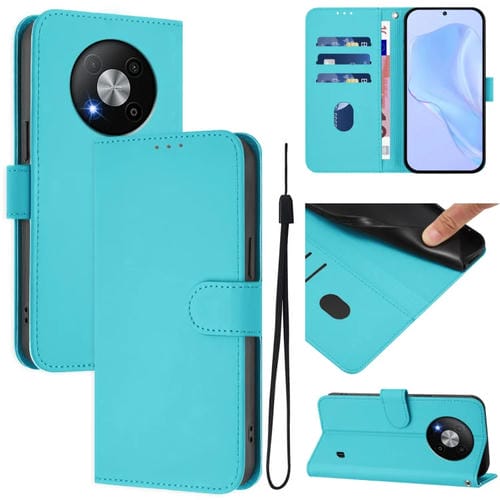 Funda de Piel Sintética con Cordón para ZTE Blade A73 5G (Azul Lago)