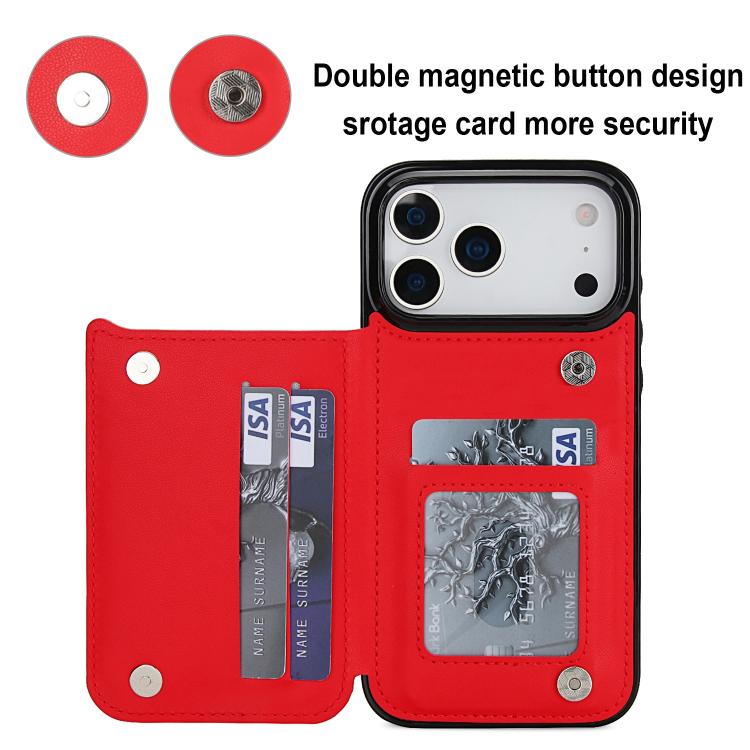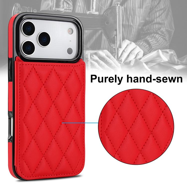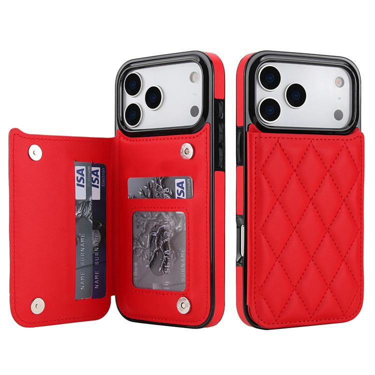 Funda de piel sintética con doble hebilla y diseño rómbico para iPhone 17 Pro (roja)