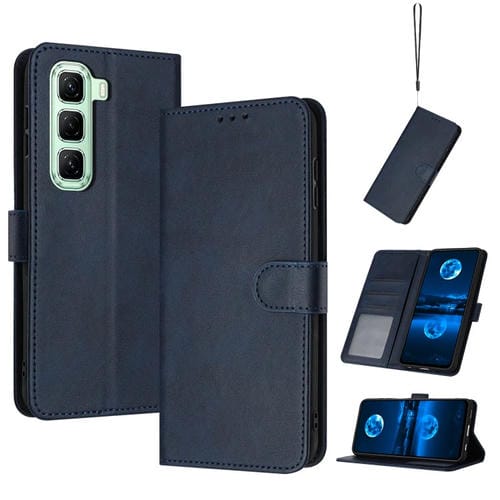Funda de Piel Sintética con Tapa para Infinix Hot 50 5G Textura Becerro (Azul Oscuro)