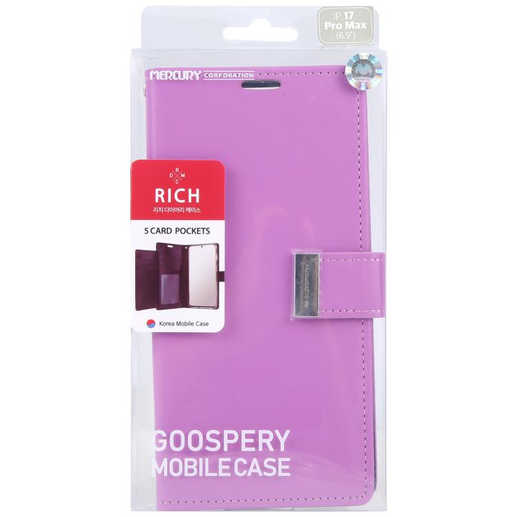 Funda de piel texturizada Crazy Horse GOOSPERY RICH DIARY para iPhone 17 Pro Max (morada)