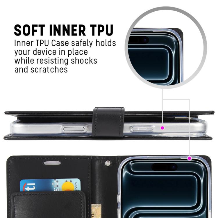 Funda de piel texturizada Crazy Horse GOOSPERY RICH DIARY para iPhone 17 Pro (negra)