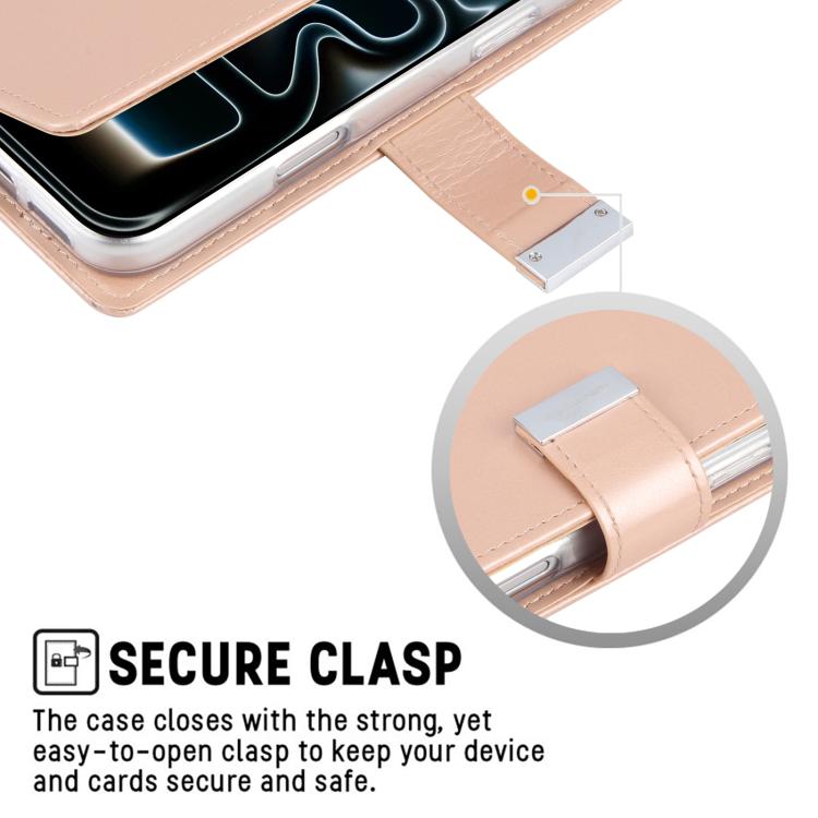 Funda de piel texturizada Crazy Horse GOOSPERY RICH DIARY para iPhone 17 Pro (Oro rosa)