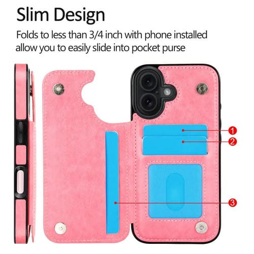 Funda de PU con doble hebilla y estampado de mariposa para iPhone 17 (rosa)