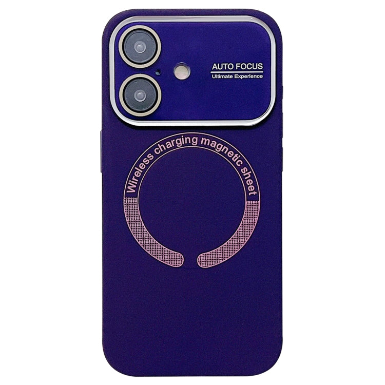 Funda de Silicona Magsafe para iPhone 16 con Lente de Vidrio Acrílico de Ventana Grande (Morado Oscuro)