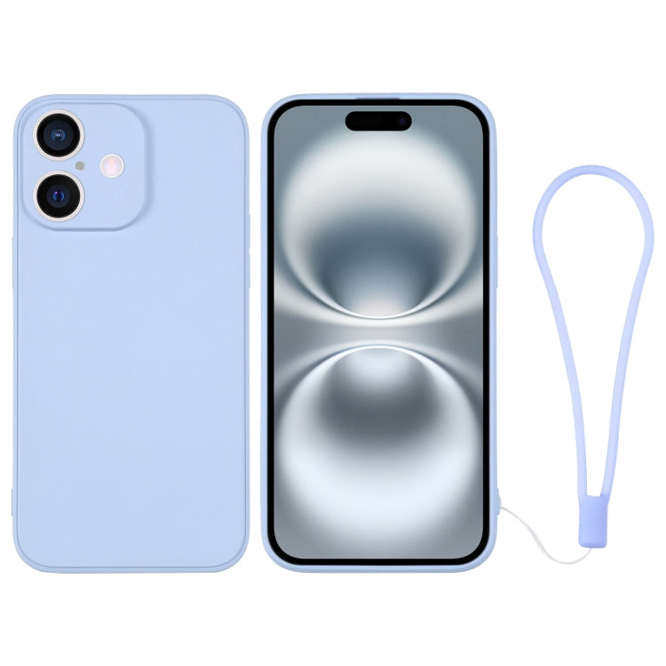 Funda de Silicona para iPhone 16 con Correa para la Muñeca (Azul Claro)